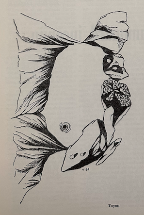 En effet, un singulier parti pris transparaît dans la plus ou moins grande part faite aux artistes étudiées. Paalen et Gorky, dont le rôle et l'influence ont été parfois déterminants, sont l'objet de quelques lignes dédaigneuses et il ne leur est accordé qu'une seule reproduction. Plus arbitrairement encore Oelze et Toyen n'ont droit à aucune — alors que Marcel Jean lui-même, ô modestie, se contente de quatre (dont un témoin objectif se passerait). Herold, Bellmer, Calder, Meret Oppenheim et Mesens (ce dernier pourtant souvent mis à contribution pour le texte) bénéficient d'une seule reproduction, contre huit (dont une en couleurs) pour le seul Dominguez, et trois pour Kay Sage, tout au plus surréaliste par alliance. Il ne s'agit pas uniquement de sympathies particulières: sont ignorés ou escamotés tous ceux qui ont continué à apporter au Surréalisme leur contribution au cours des dernières années. C'est ainsi que Hantai et Svanberg peuvent être passés sous silence. N'est-il pas normal d'ailleurs qu'un historien se trouve condamné à perdre contact avec le présent ? Sans parler de Fernandez, Hayter, Heisler, Granell, Maria, Riopelle, Bjoerke-Petersen, Okamoto, Remedios, Onslow-Ford... que n'évoque aucune reproduction.